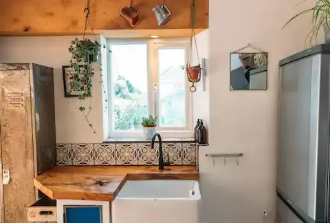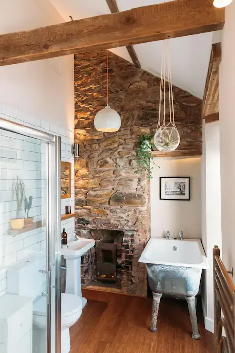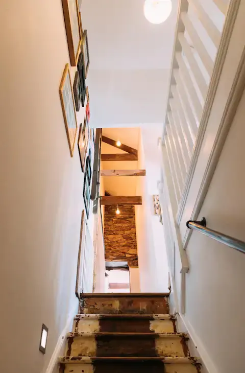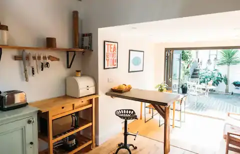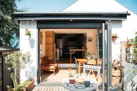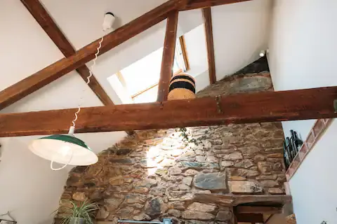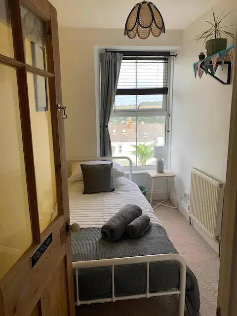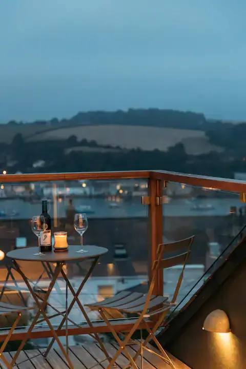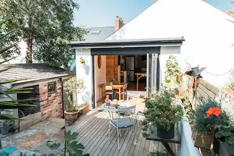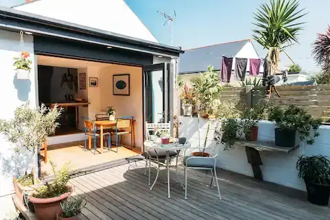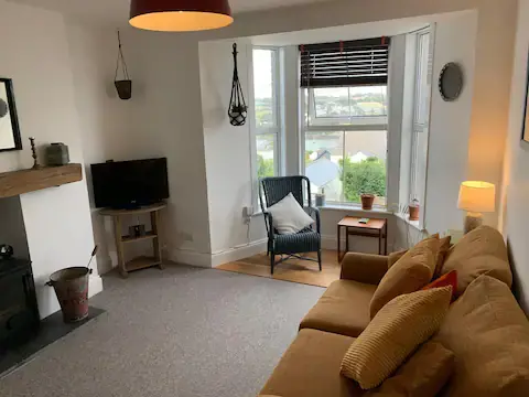 Unique, stylish and spacious apartment with stunning views overlooking the Falmouth Estuary, open plan rustic style kitchen and cosy garden with french windows leading out onto decking.